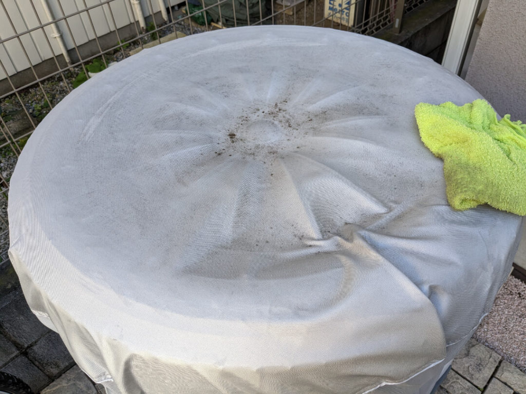 前日に雨が降ったので、カバーの上に水が溜まっています。