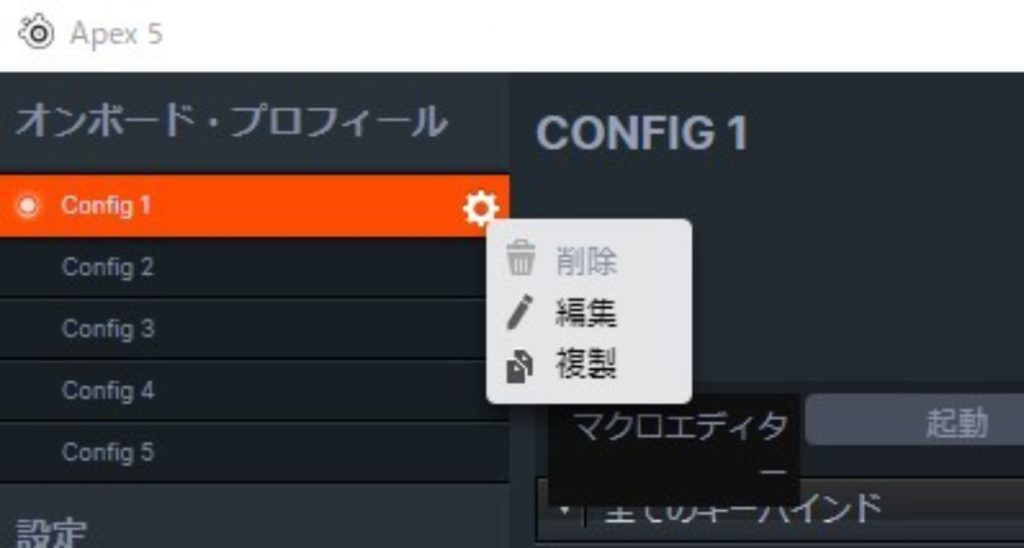 Config1(設定1) から Config5(設定5) まであります。