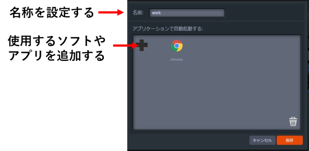 今回はchromeを開くとworkというプロフィールに切り替わるように設定します。